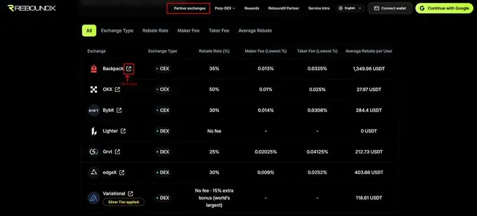 Currently, EVM-compatible wallets are supported — that’s it. From this point on, all you need to do is trade. Each morning, simply check the rebates that have arrived in your wallet. You can track all rebate details in real time via My Page → Rebate History, with breakdowns by 1 / 30 / 60 / 90 days, and the dashboard updates immediately upon payout.