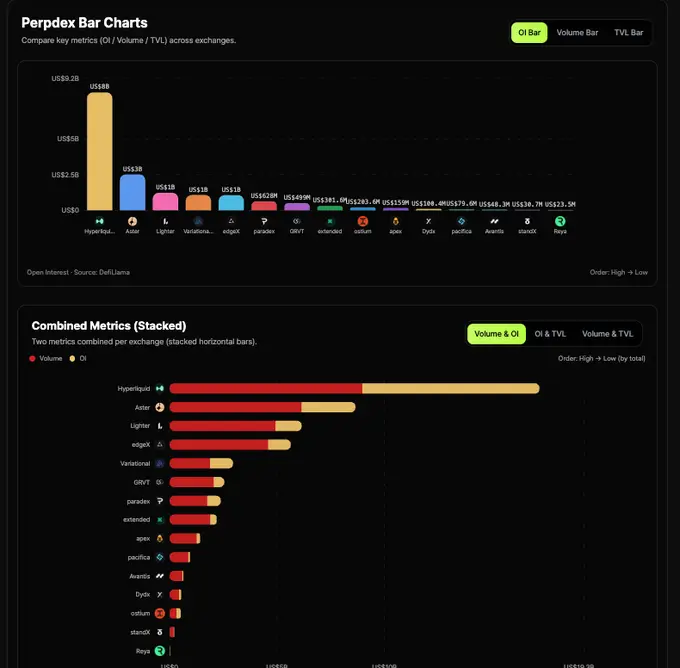 We also launched a comprehensive perp DEX dashboard allowing users to view Volume, Open Interest, and TVL across exchanges at a glance.