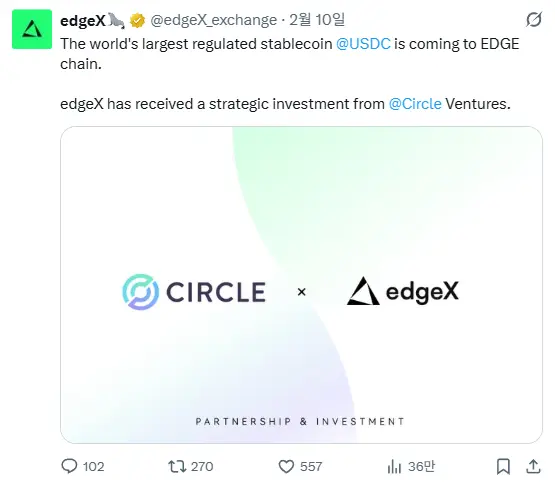 @edgeX_exchange delivered major partnership and investment news with Circle.