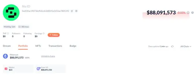 https://debank.com/profile/0xd22fae190736effc8ceb3d8845a5d33ae7805392 : $88M