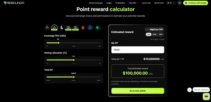 Calculate the value of the points you have accumulated so far. Our calculator lets you do this with a simple scroll, and it also allows you to build scenarios for edgeX’s potential maximum FDV over time. https://www.reboundx.net/en/perpdex#perpdex-point-calculator